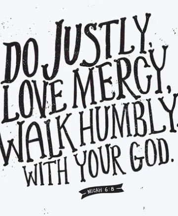 Micah 6:8 "He has shown you, O man, what is good; And what does the LORD require of you But to do justly, To love mercy, And to walk humbly with your God."